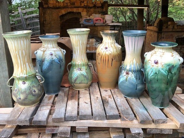 In my early professional career I was focused on developing business skills, working primarily in business management. I never thought of becoming a potter; in my mind, that was just for fun. But one day, while living in St. Louis and working at Citibank as a Mortgage Loan Officer, a friend and I decided to go to a local craft show that was taking place just a couple of blocks away at the Missouri Botanical Gardens. I was surprised by the quality of work we saw and realized just how much I missed having a creative outlet in my life. Although I hadn't touched clay in over six years, I was inspired and motivated to take up pottery again. Soon after I had joined a clay studio nearby that had all the equipment necessary and several other potters who were eager to help me get started again. I am eternally grateful for their help and encouragement, without which I would have struggled mightily. For the next year I would spend virtually all of my free time at the studio, often working late into the evening after work and on weekends. It was there that I began to really develop the notion of doing this for a living, but for the time being it was still just a hobby. However, I had to do something with all those pots I was making, so occasionally on Saturdays I would join one or two of the others in the studio to rent space at the local farmer's market just to try to unload all of the pots I was rapidly accumulating. I found that actually getting money for these things was really quite rewarding!